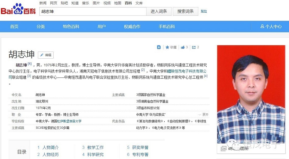 电子科学与技术学科带头人,通讯工程杰出代表,我省卓越的物联网专家、学者,中南大学教授、博士生导师,中南大学&恒茂高科(恒茂电子)通讯与电子联合实验室、物联网系统与通信工程技术研究中心执行主任、物联网系统与通信工程技术研究中心总工程师,湖南天冠电子信息技术有限公司总经理胡志坤教授因病医治无效,于2016年4月14日不幸逝世,享年40岁。