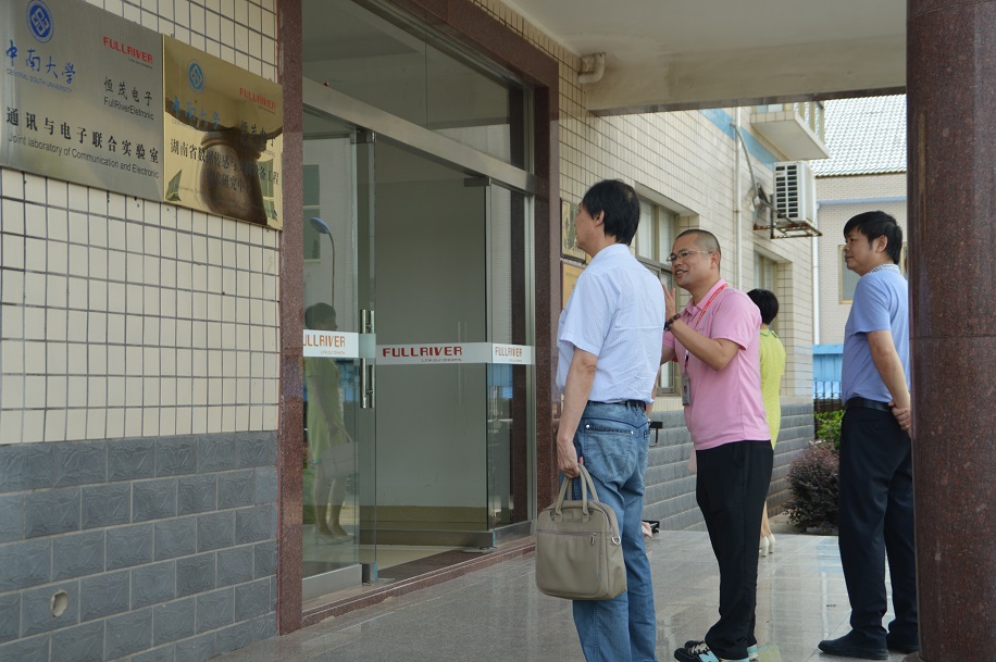 在研发大楼前,曾在中南大学求学任教的陈松岭副主任被中南大学与恒茂高科(恒茂电子)联合成立的工程技术中心的牌匾所吸引,中南大学与恒茂高科(恒茂电子)的产业联合、谱写湖南省网络通讯华章的话题由此展开。