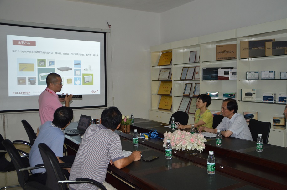 在介绍公司的POE网络交换机产品时,董事长郭敏介绍到,正是凭借这一系列产品公司获得了“国家重点火炬计划立项”和国家“创新基金”的支持,情到深处郭董亲自演示,如数家珍地为陈副主任讲述恒茂电子交换机的用途、原理和特色。在介绍恒茂高科(恒茂电子)国产网络核心处理及查询芯片时,郭董从当前国际国内的信息产业现状和发展形势,结合企业科研管理团队、创新理念、知识产权积累和发展优势等方面,纵论恒茂高科(恒茂电子)发展国产网络核心处理及查询芯片的天时(国家政策)地利(省政府的重视)人和(恒茂的研发优势)。