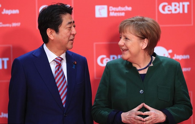 今年,CeBIT展继续保持全球最高办展规格:德国总理默克尔与CeBIT合作国日本首相安倍晋三双双出席,为这一顶级科技盛会站台。展会首日,默克尔和安倍一同参观展会现场,并走访了位于12号馆A61号的恒茂高科FULLRIVER的品牌展位。