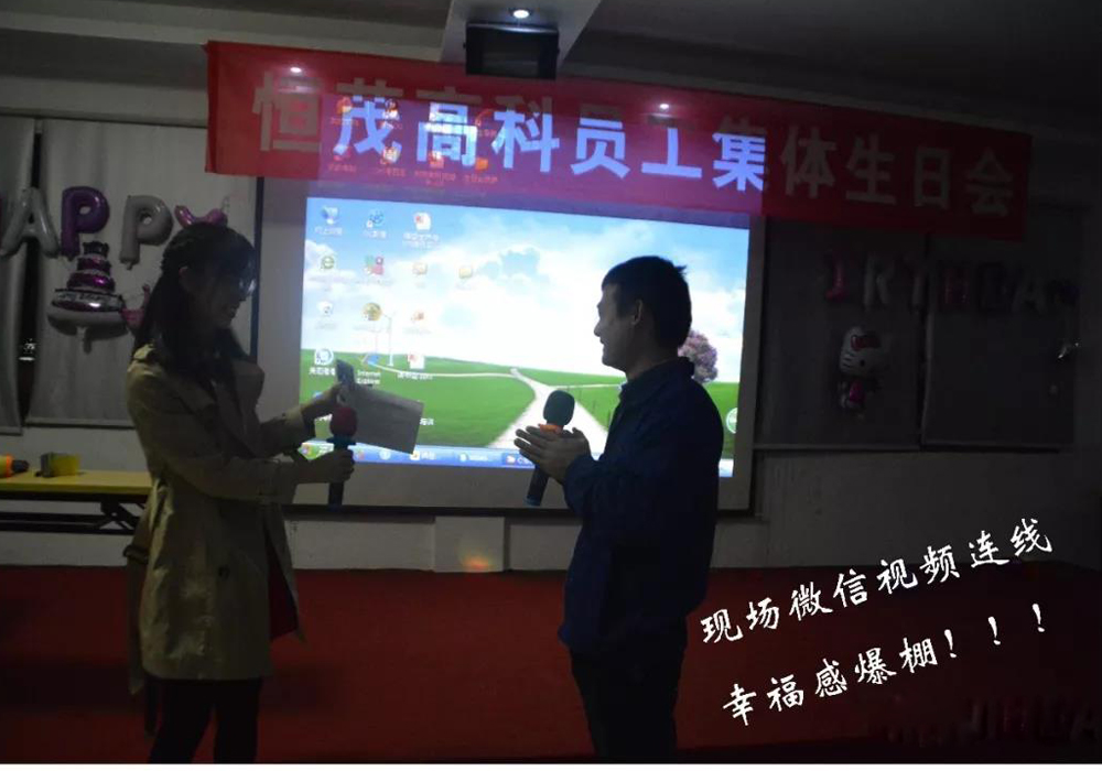 虽然此次生日会部分同事和家属没有来到现场,但是他们的祝福来到我们的现场,通过工作人员们秘密谋划,为寿星们拍摄了VCR祝福;所谓“幸福来敲门,惊喜一波接一波”现场连线寿星们的家属,送上了他们的祝福。
