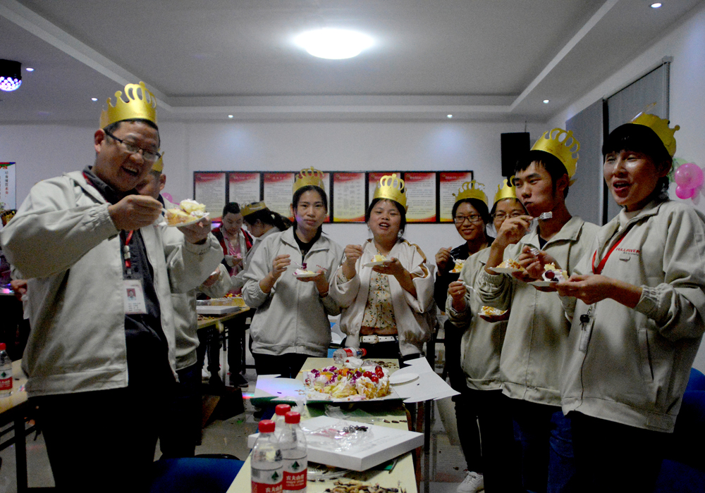随着“祝你生日快乐......”这首熟悉而美妙的旋律响起,全场灯光熄灭,大家齐唱生日歌,蛋糕上的烛光映着员工们欢快的笑脸,伴随着歌声,许下生日愿望,吹熄蜡烛,品尝生日蛋糕,互相送上祝福。