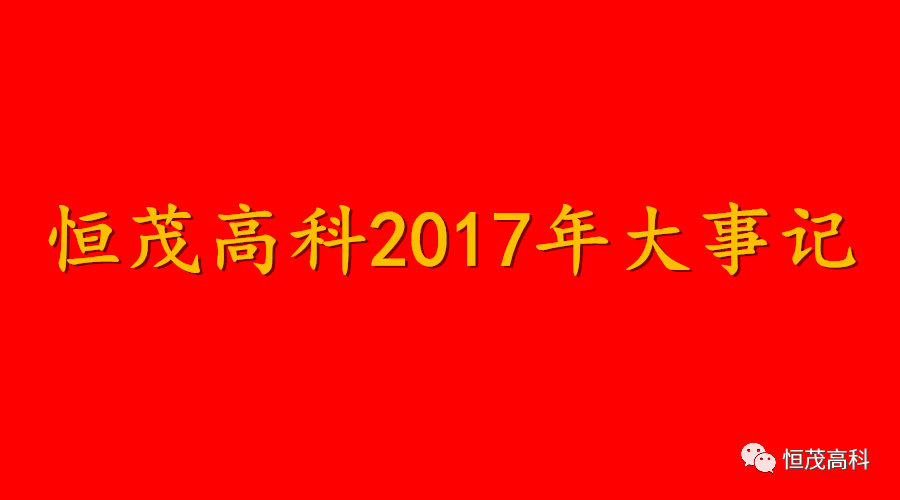 2017年很长,足足有384个日夜;2017年很短,过去的日子仿佛就在昨天;2017年很忙,沉甸甸的收获对得住我们一年的忙碌和辛勤。 这一年,恒茂高科巧创新,精制造,科技创赢,品质攻坚...