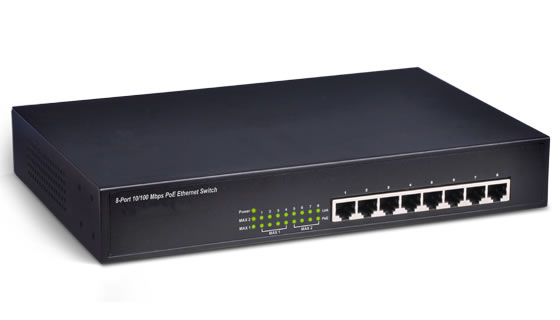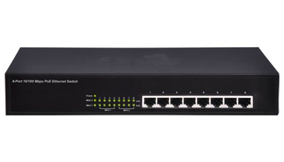 •  8个10/100M 自适应RJ45端口,1~8端口支持PoE供电