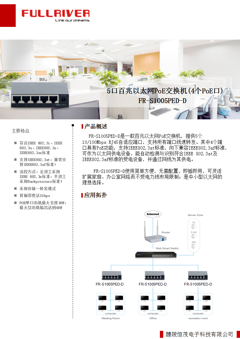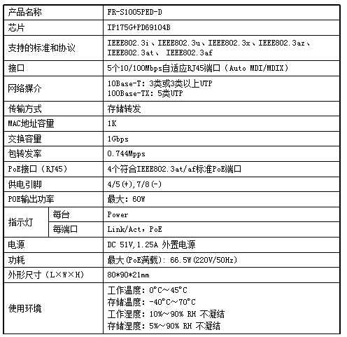 - 支持IEEE802.3af、IEEE802.3at标准;