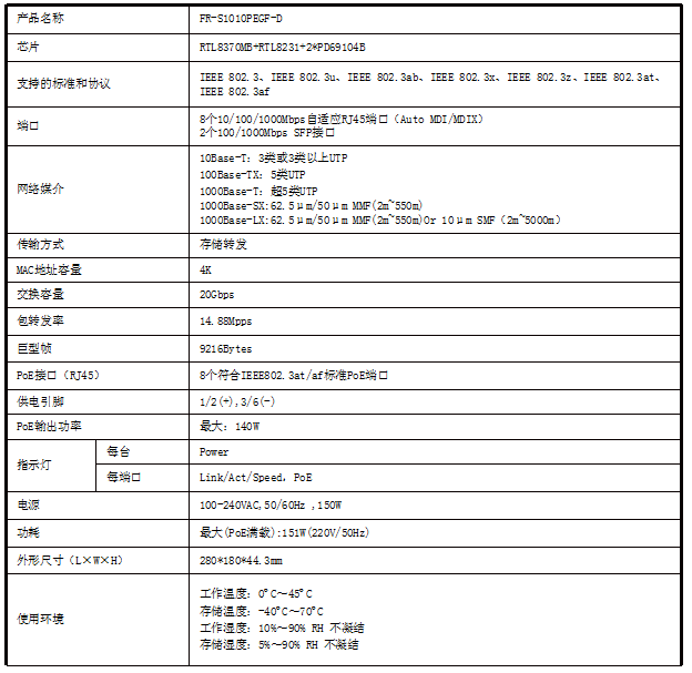 - 支持IEEE802.3af、IEEE802.3at标准;
