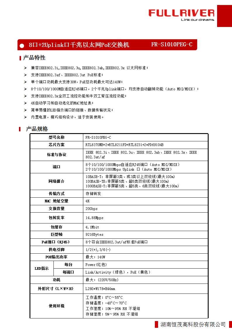 恒茂高科FULLRIVER·8口+2Uplink口千兆以太网PoE交换机