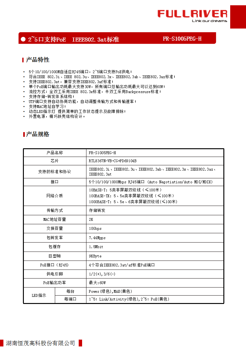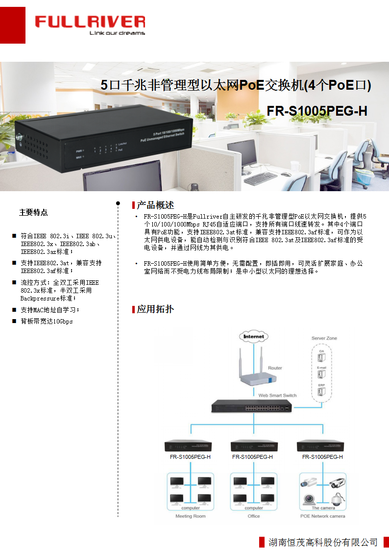 • 支持IEEE802.3at,兼容支持IEEE802.3af标准;