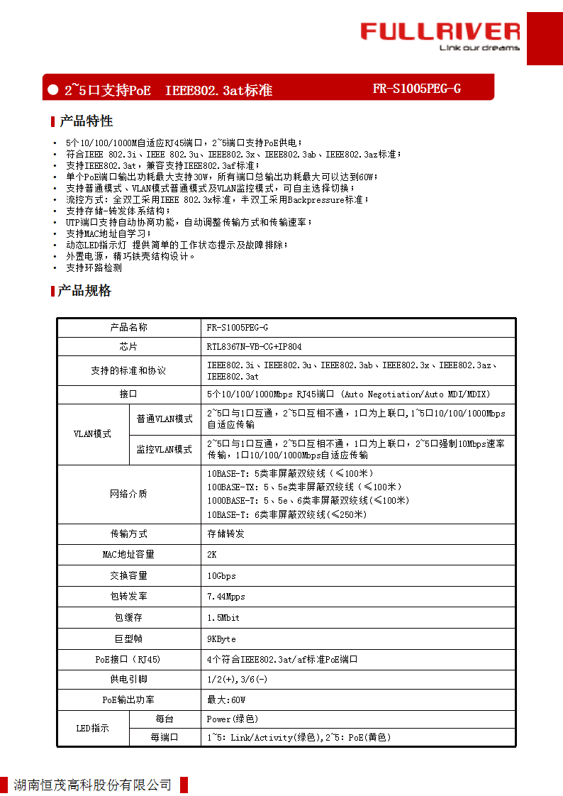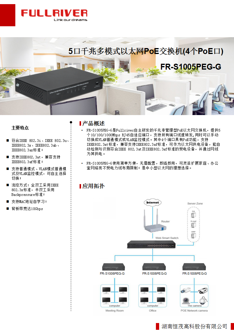恒茂高科FULLRIVER五口千兆多模式非管理型POE以太