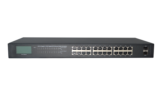 - LCD实时显示PoE供电状态。