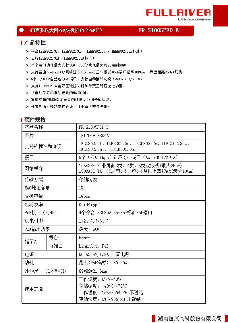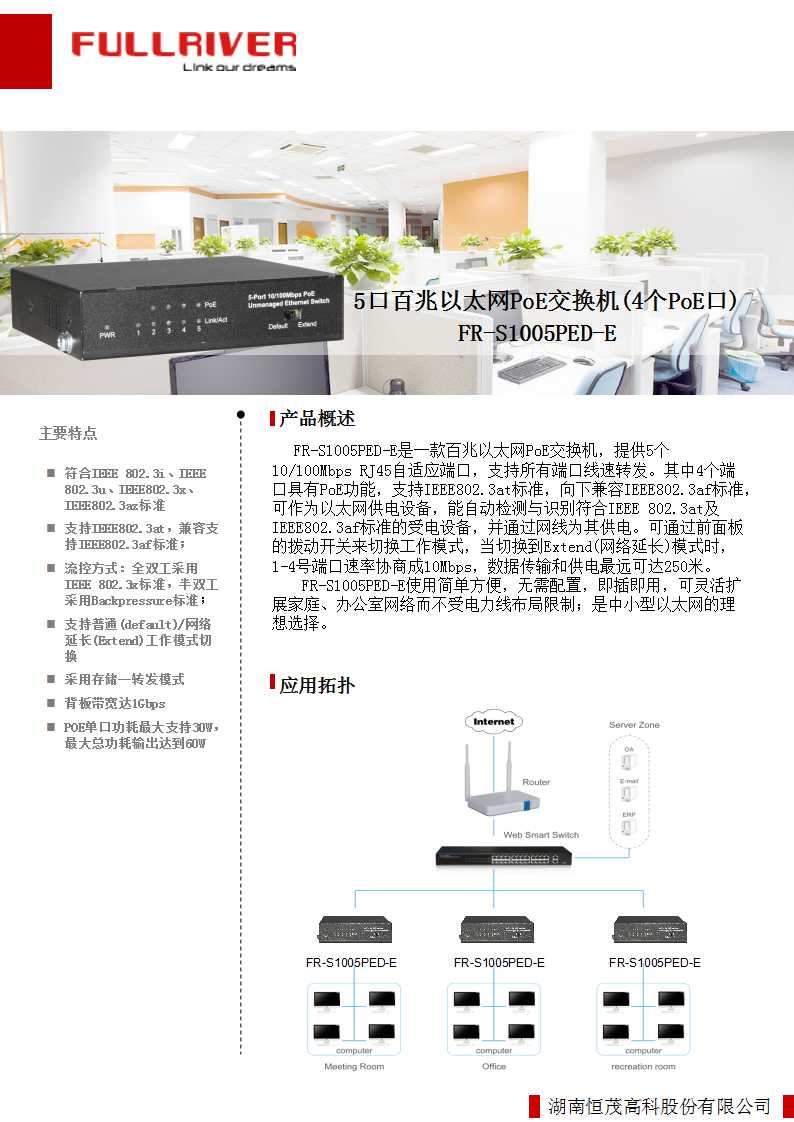 恒茂高科FULLRIVER 5口百兆PoE交换机