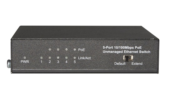 - 支持普通(default)/网络延长(Extend)工作模式(PoE端口速率10Mbps,最远距离250m)切换