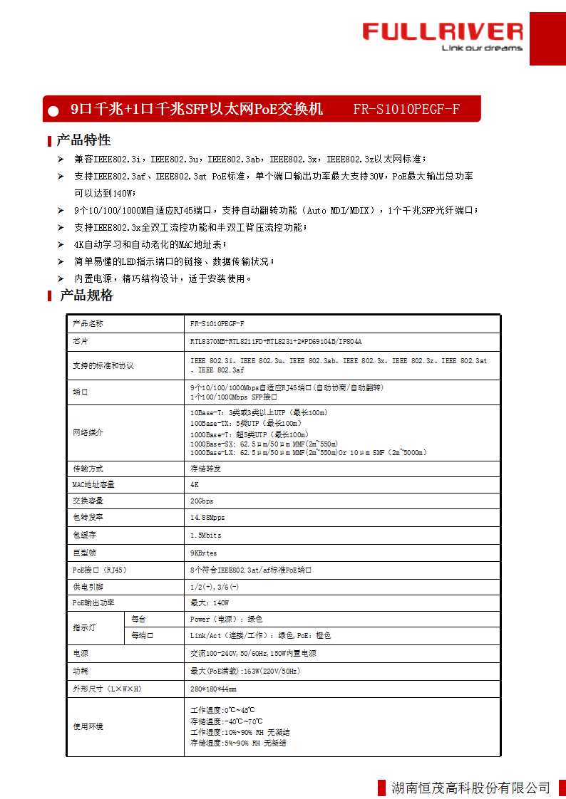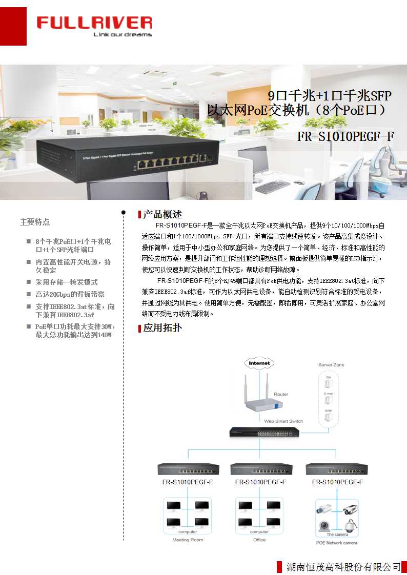 恒茂高科 FULLRIVER 9口千兆+1口千兆SFP以太网PoE交换