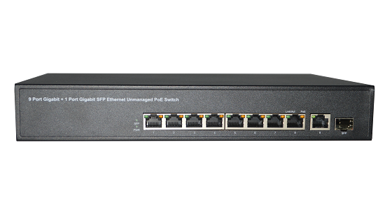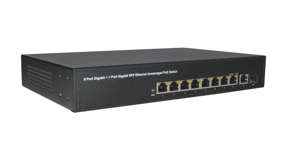 • 9个10/100/1000M自适应RJ45端口,支持自动翻转功能(Auto MDI/MDIX),1个千兆SFP光纤端口;