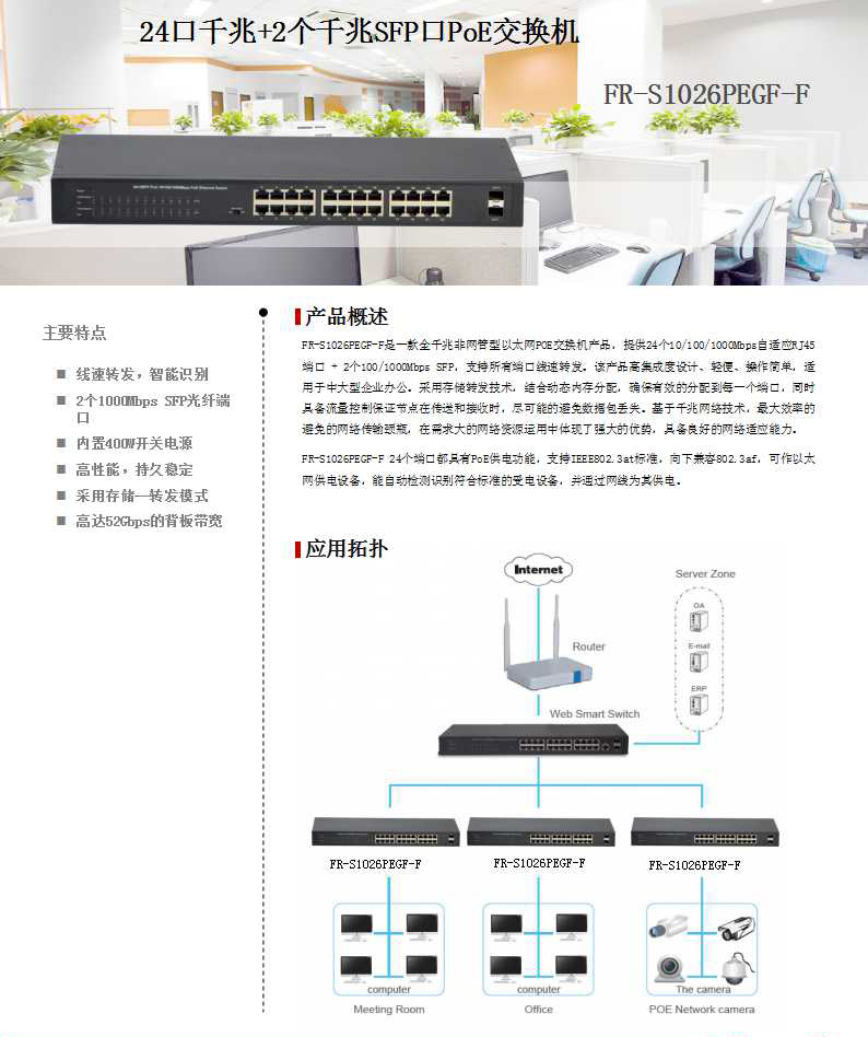 • 支持IEEE802.3af、IEEE802.3at标准;
