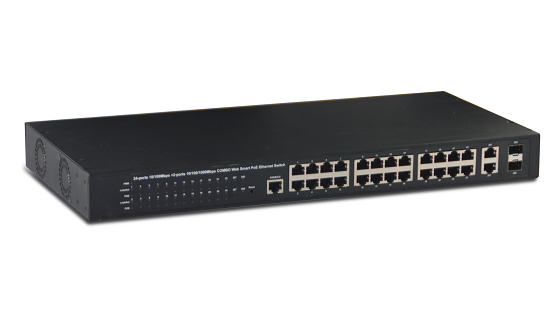 - 24个10/100Mbps自适应RJ45端口,支持端口自动翻转(Auto MDI/MDIX);