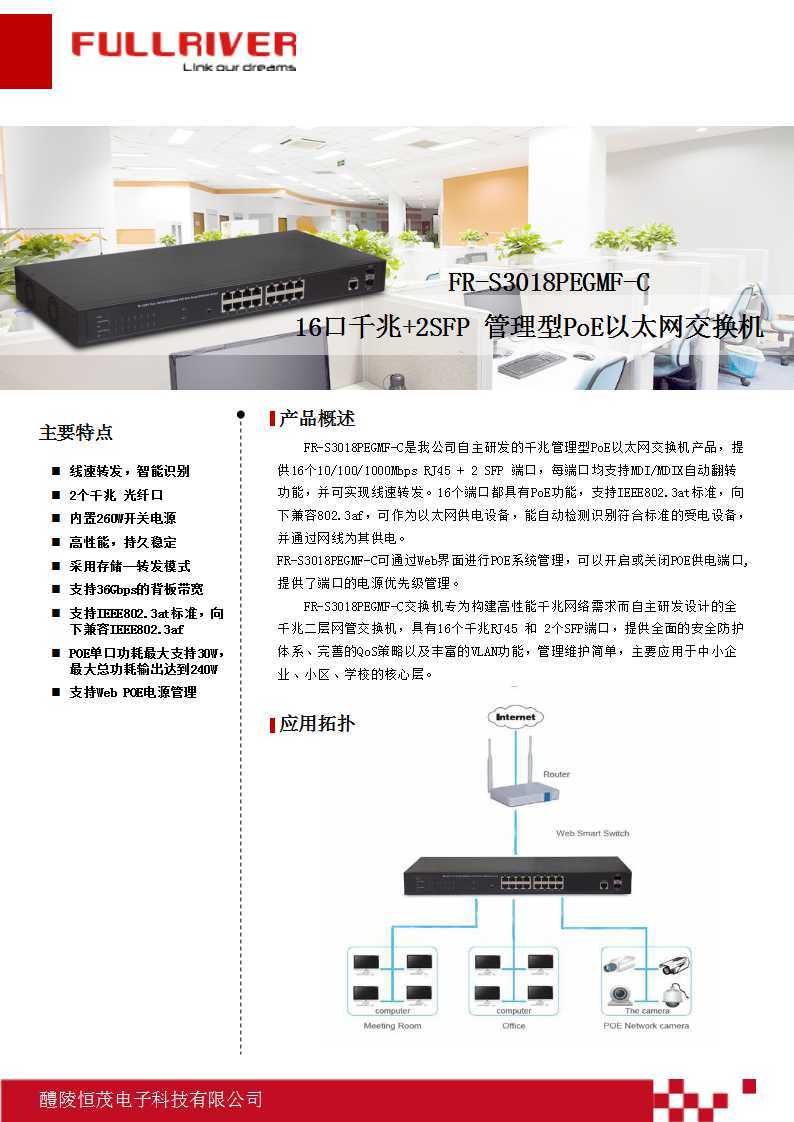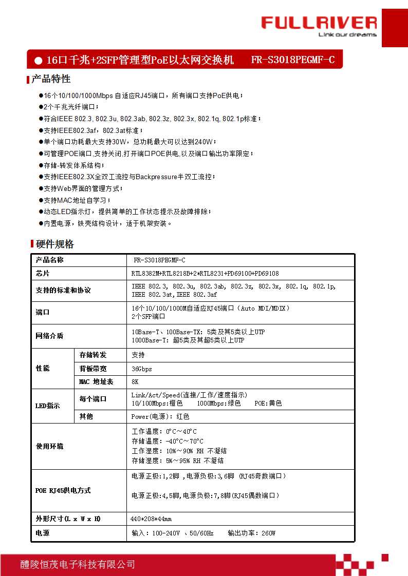 - 16个10/100/1000Mbps 自适应RJ45端口,所有端口支持PoE供电;