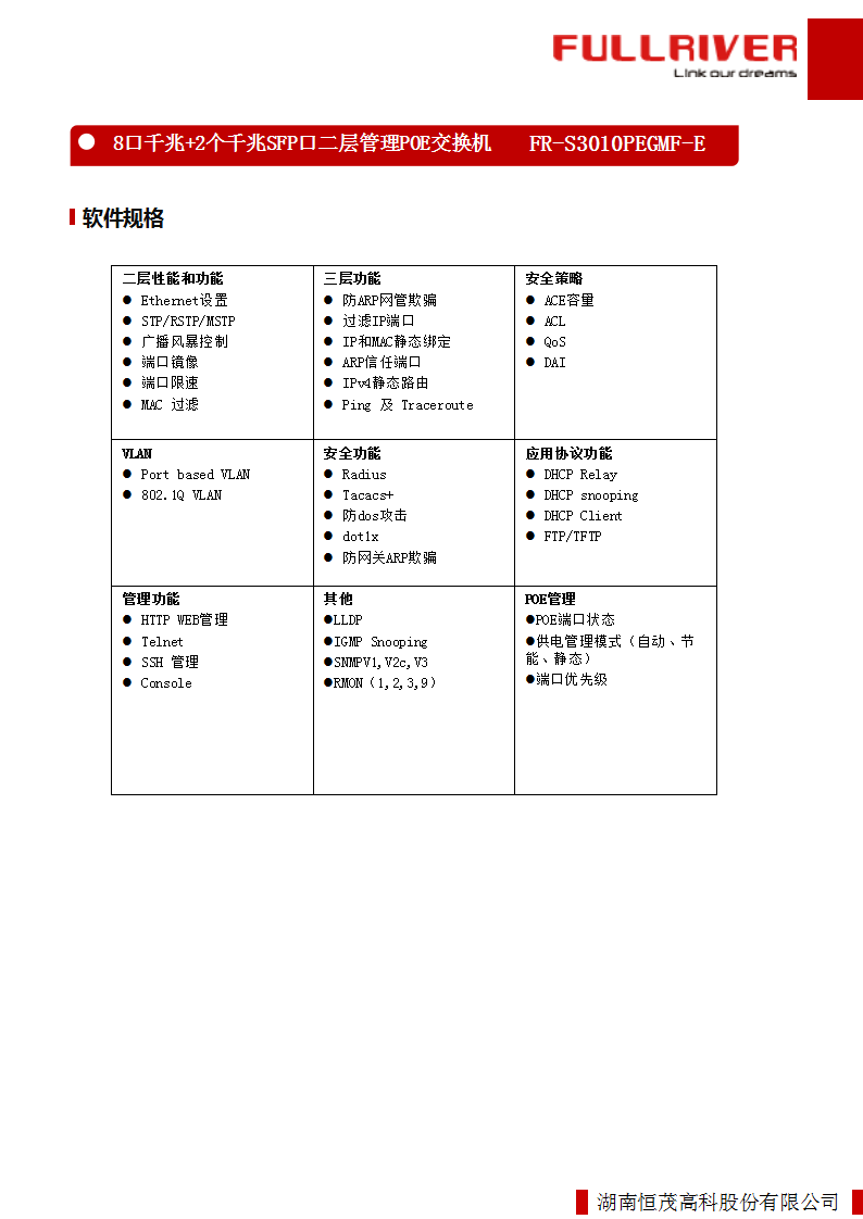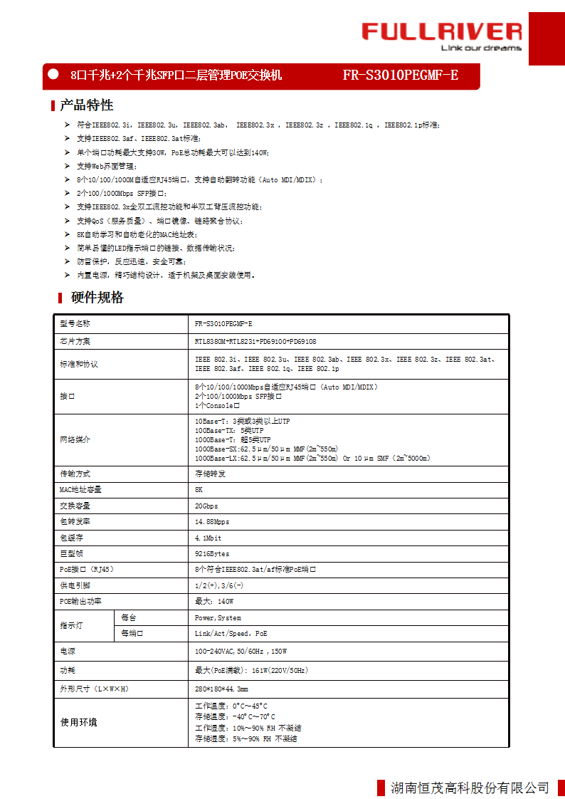 恒茂高科FULLRIVER·8口千兆+2个千兆SFP口二层管理