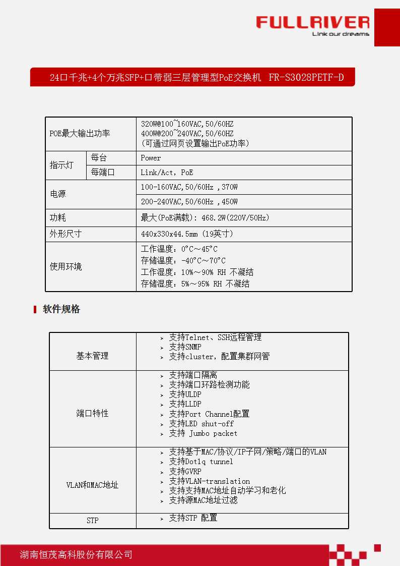 恒茂高科FULLRIVER 24口千兆+4个万兆SFP+口带弱三层