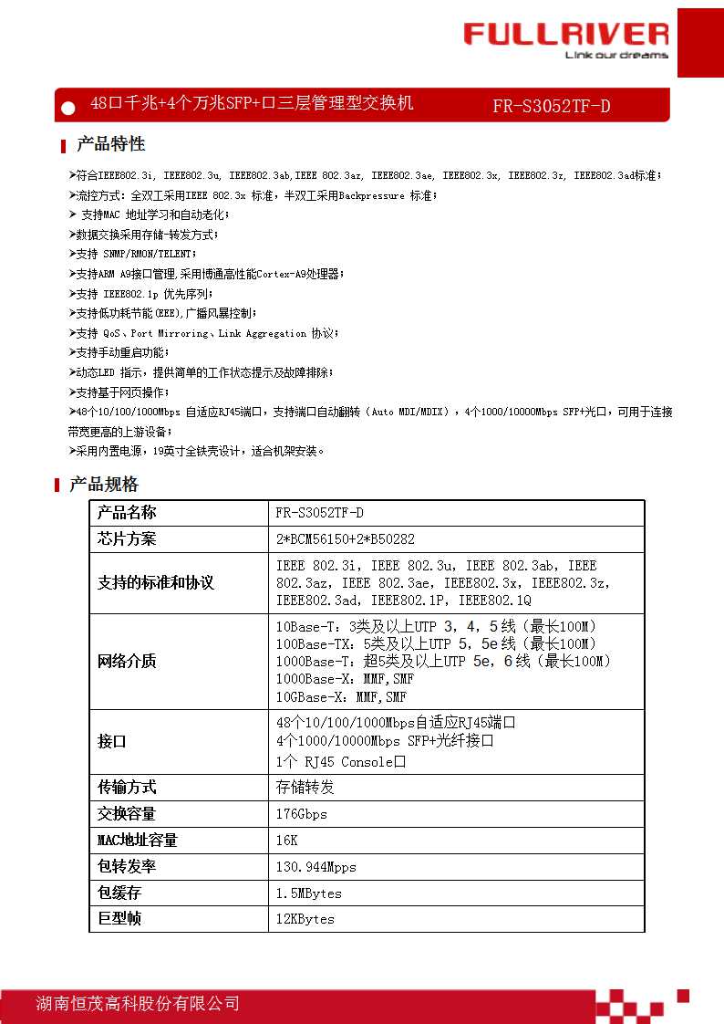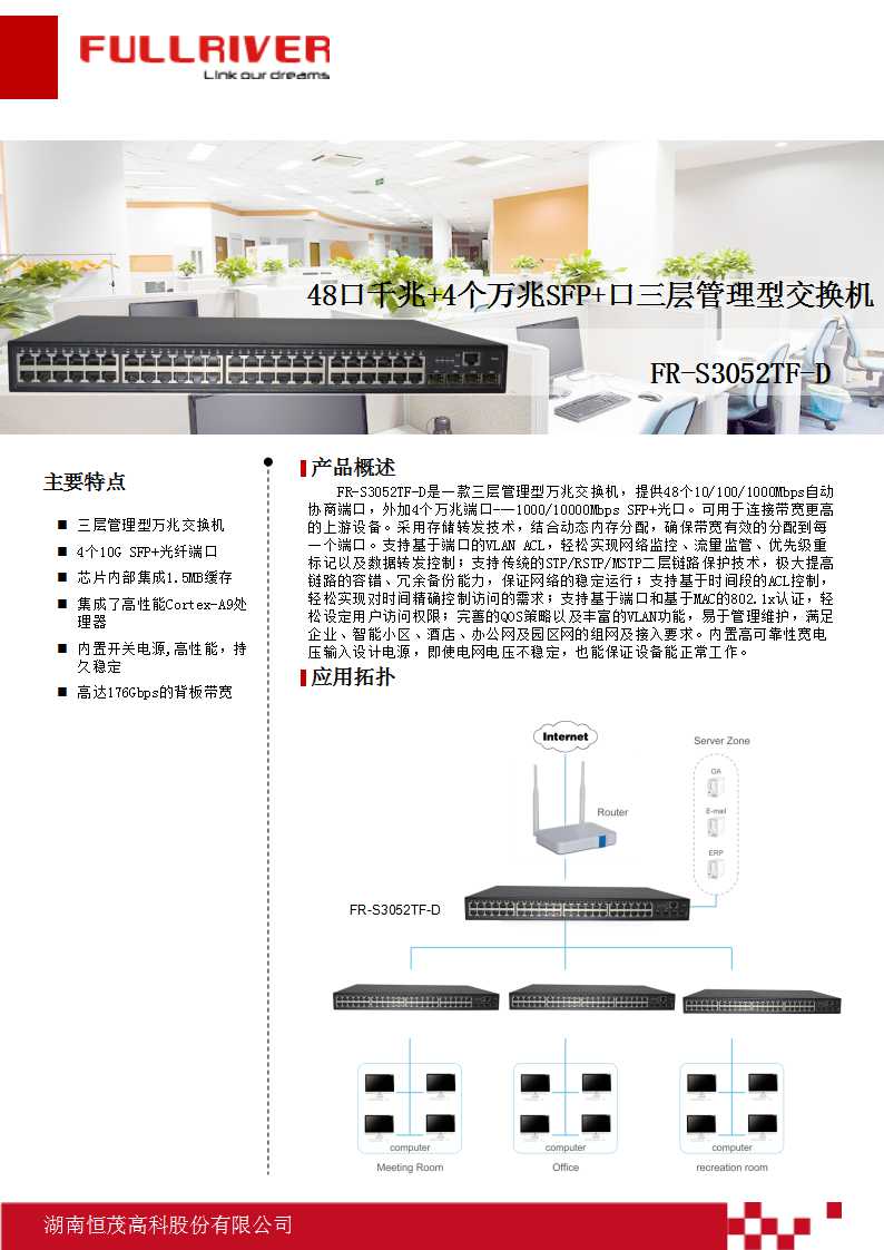 恒茂高科 FULLRIVER 48口千兆+4个万兆口SFP+口三层管