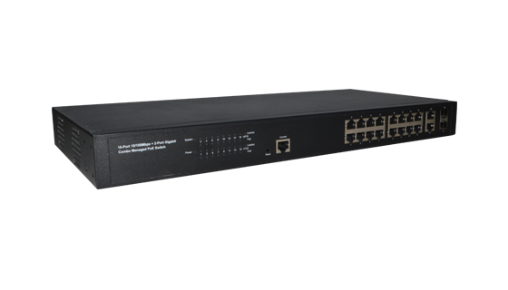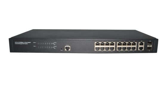 16口百兆+2千兆光电复用口二层管理型PoE交换机