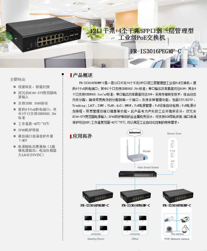 24个符合IEEE802.3at/af标准PoE端口