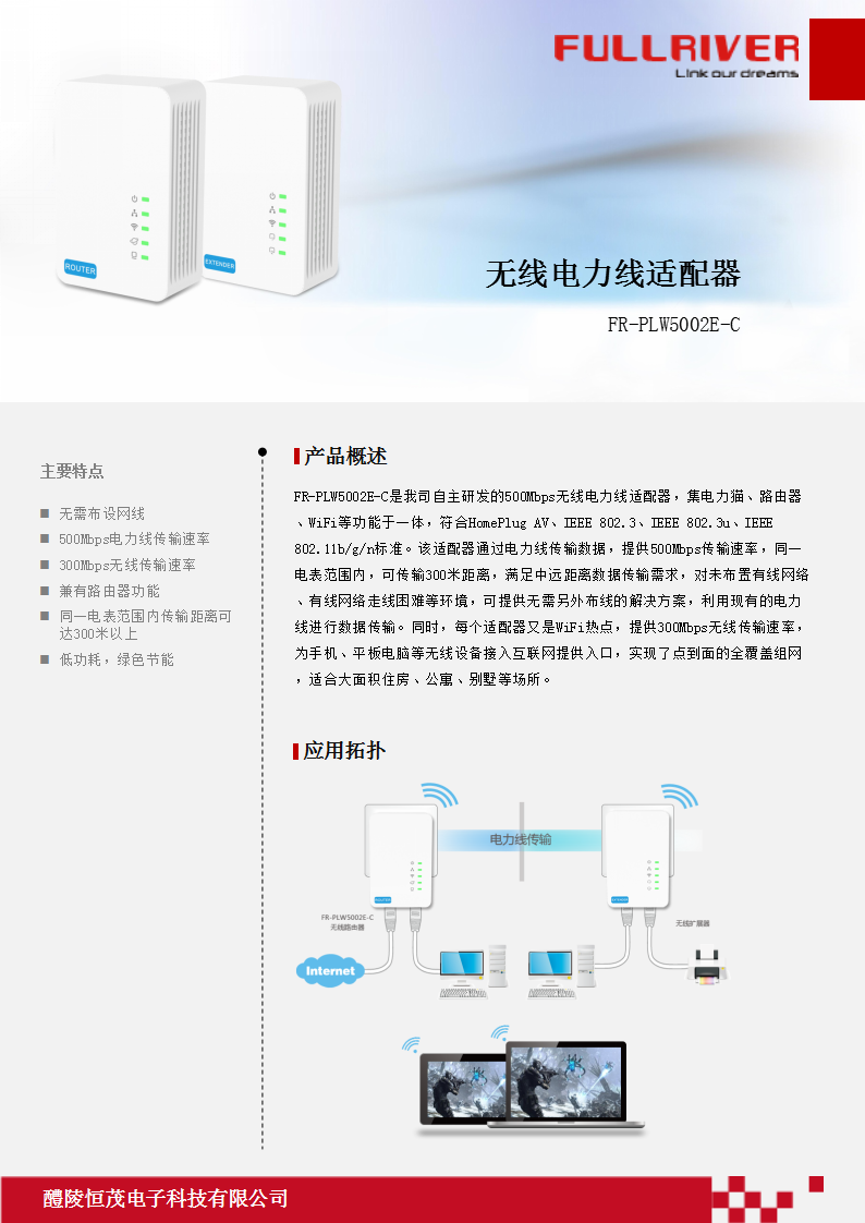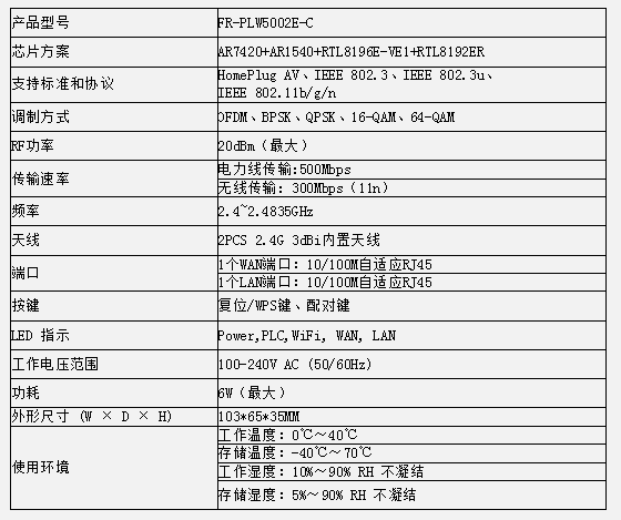 - 利用电力线组建有线和无线网络,无需另外布设网线,有插座的地方就可接入网络,并提供2.4GHz WiFi热点;