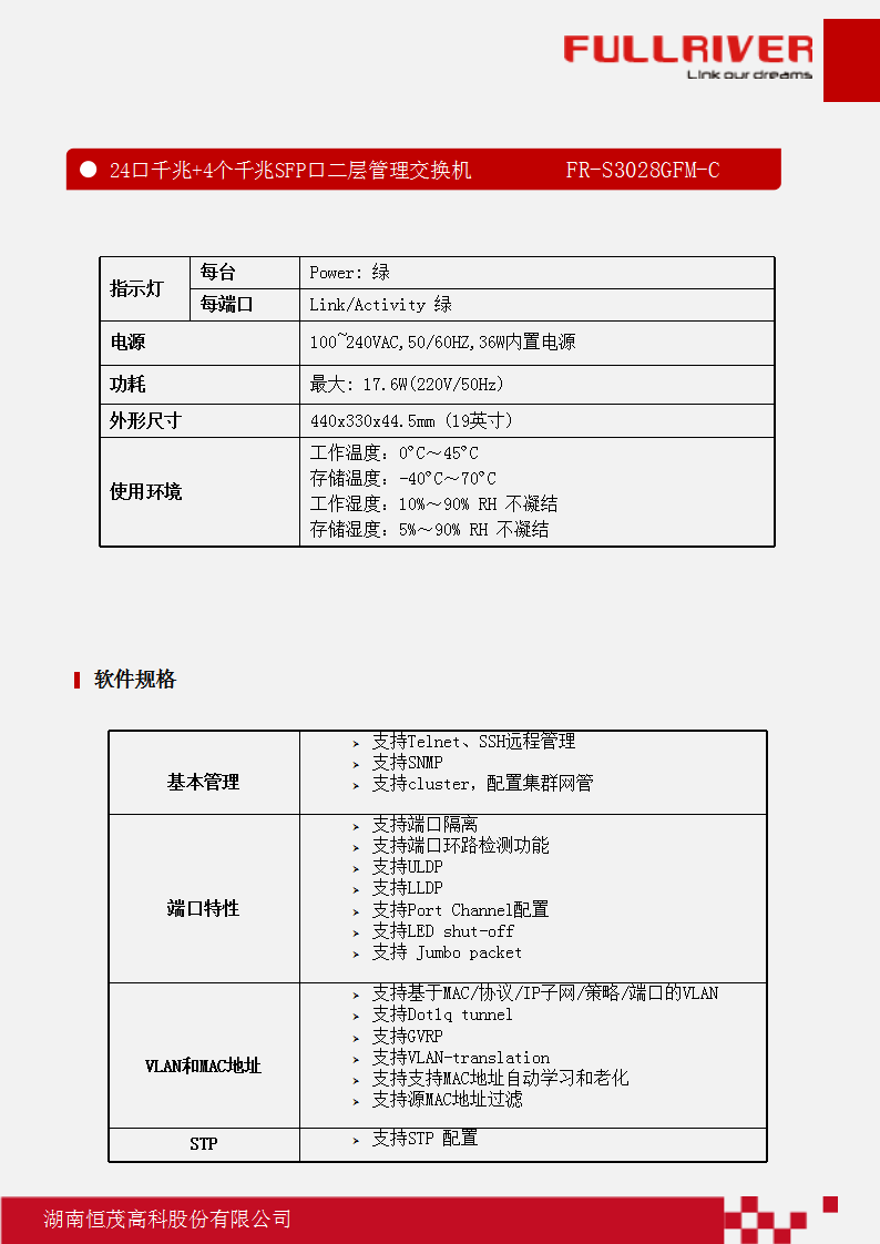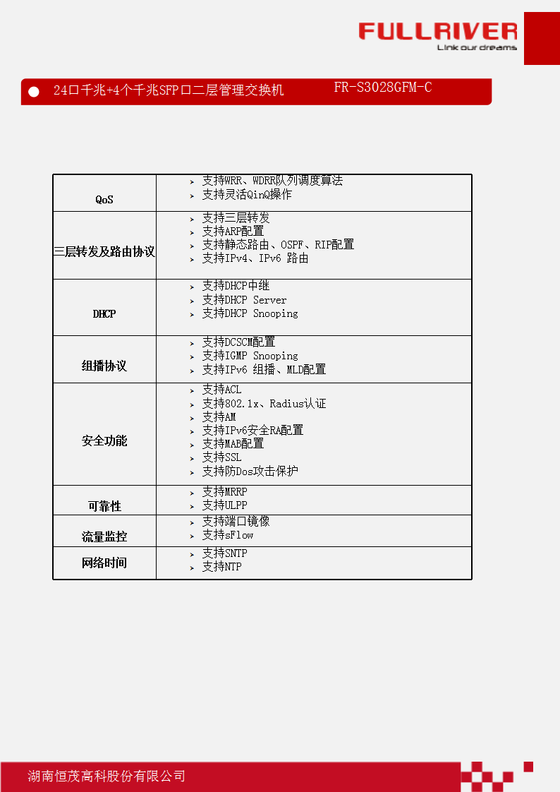 恒茂高科FULLRIVER 24口千兆+4个千兆SFP口二层管理交
