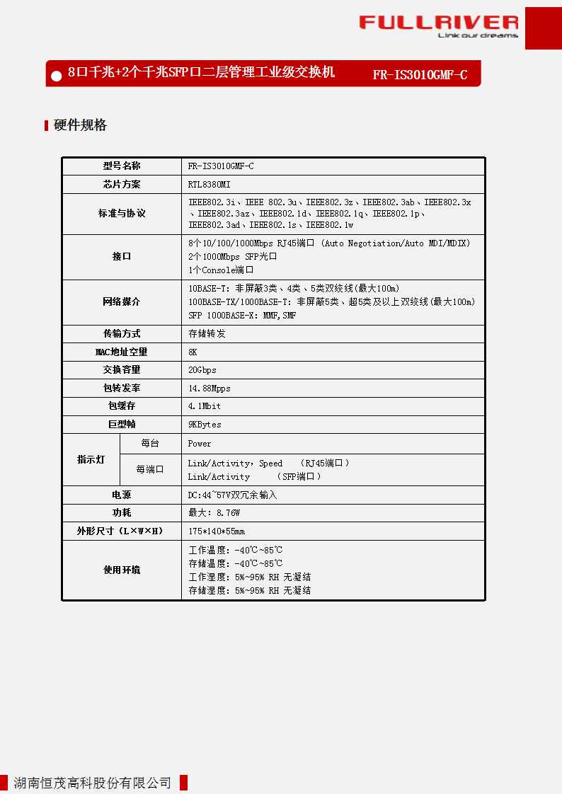 - 2个千兆SFP光纤端口;