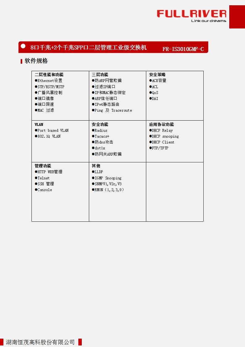 - 支持IGMP Snooping协议,有效缓解上层设备的转发压力;