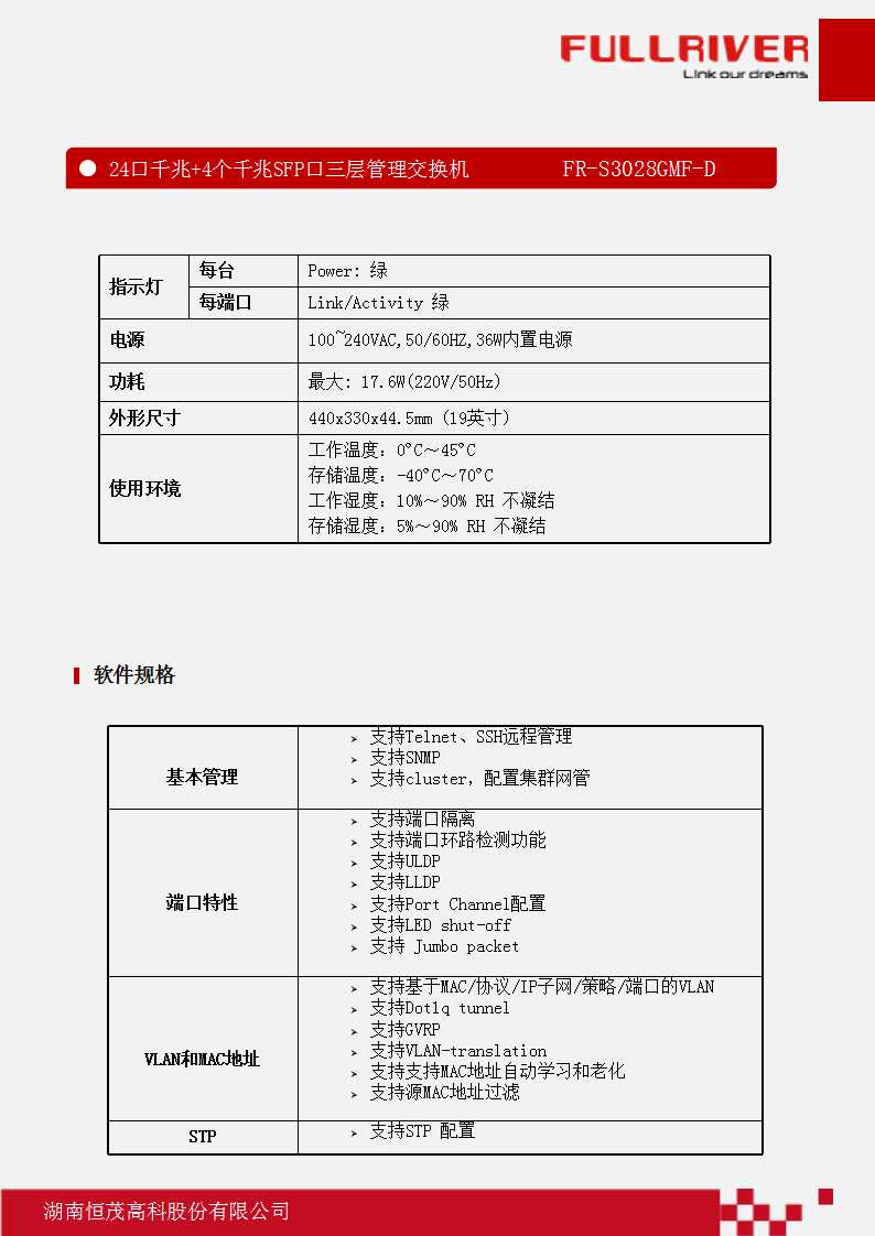 恒茂高科 FULLRIVER 24口千兆+4个千兆SFP口三层管理