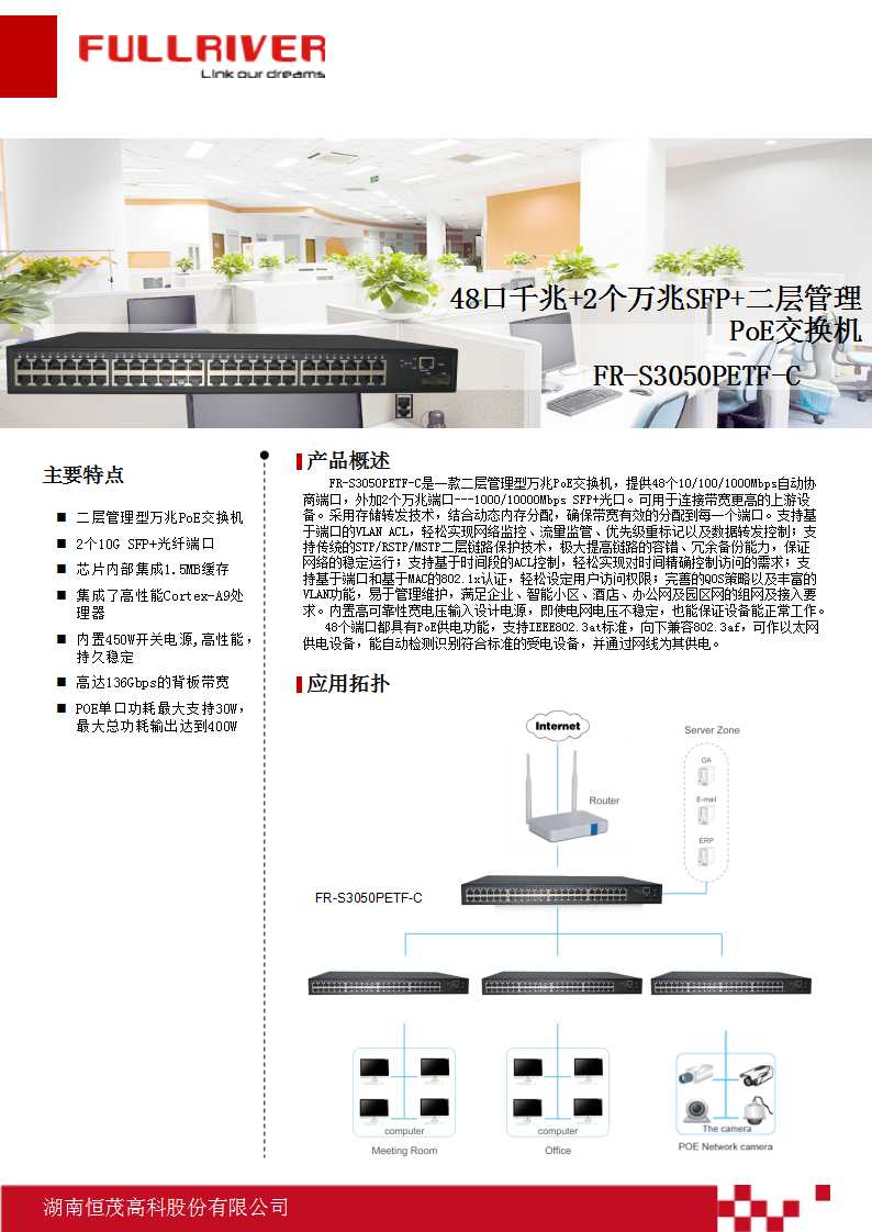 恒茂高科FULLRIVER 48口千兆+2个万兆SFP+二层管理