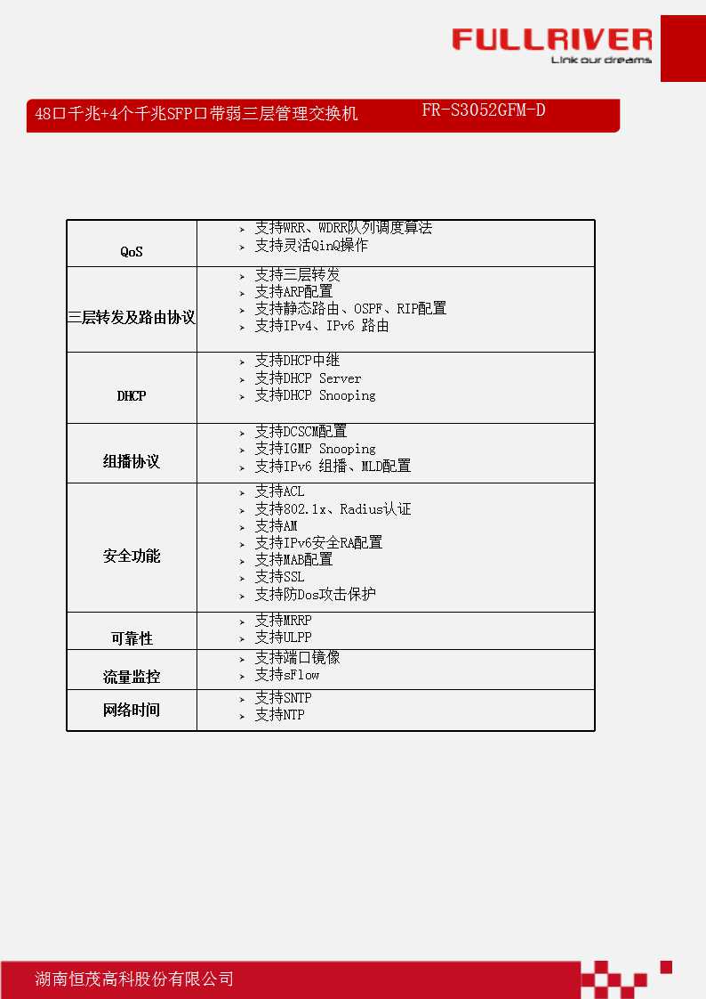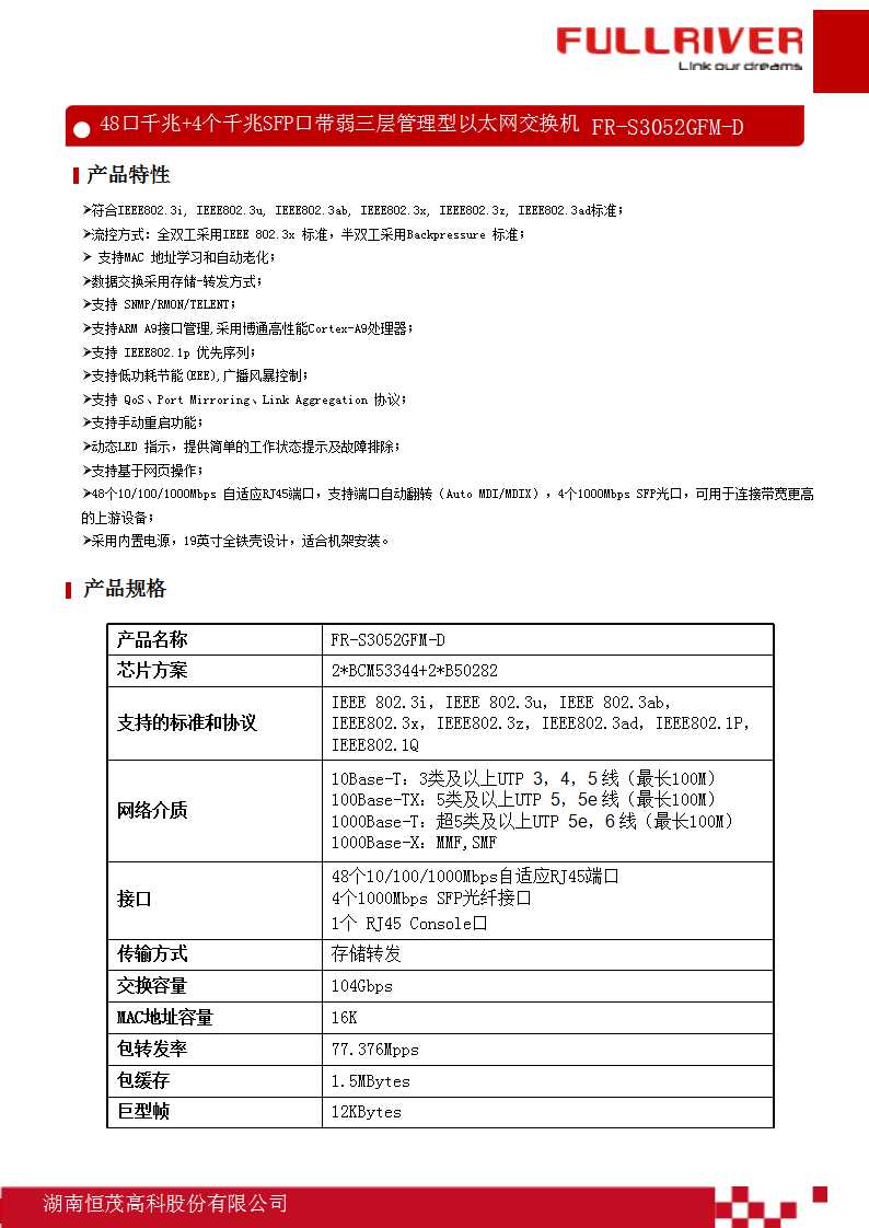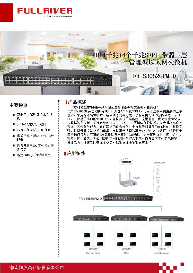 恒茂高科 FULLRIVER 48口千兆+4个千兆SFP口带弱三层