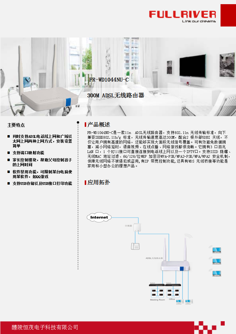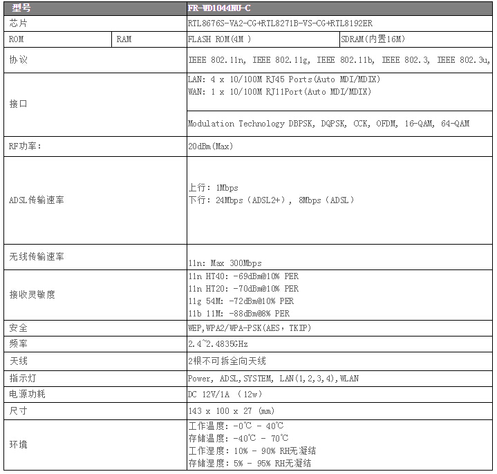 - 集成高速DSL调制解调器,NAT路由器和无线接入点在同一台设备,提供一站式的网络解决方案
