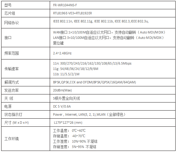 - 支持高达300Mbps的无线传输速率,具备速率自适应功能,自动调整无线传输速率;