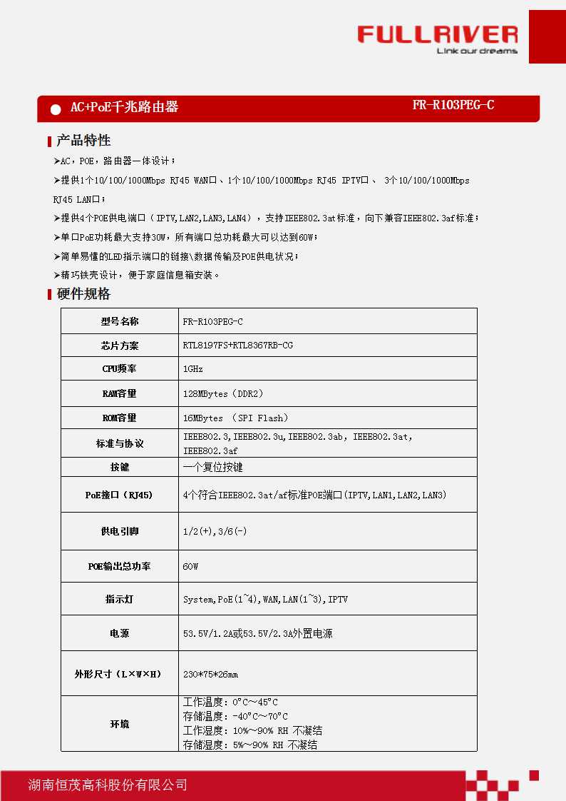 恒茂高科FULLRIVER AC POE 千兆路由器FR-R103PEG-C