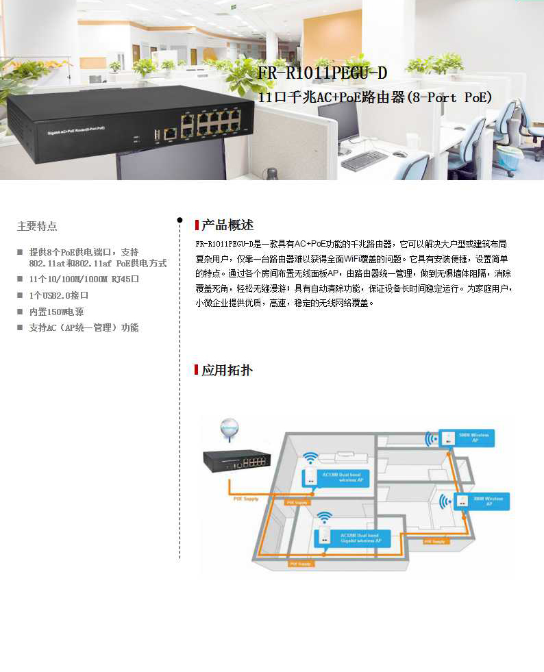 一个10/100/1000Mbps RJ45 WAN口 十个10/100/1000MbpsRJ45 LAN口 一个USB2.0接口