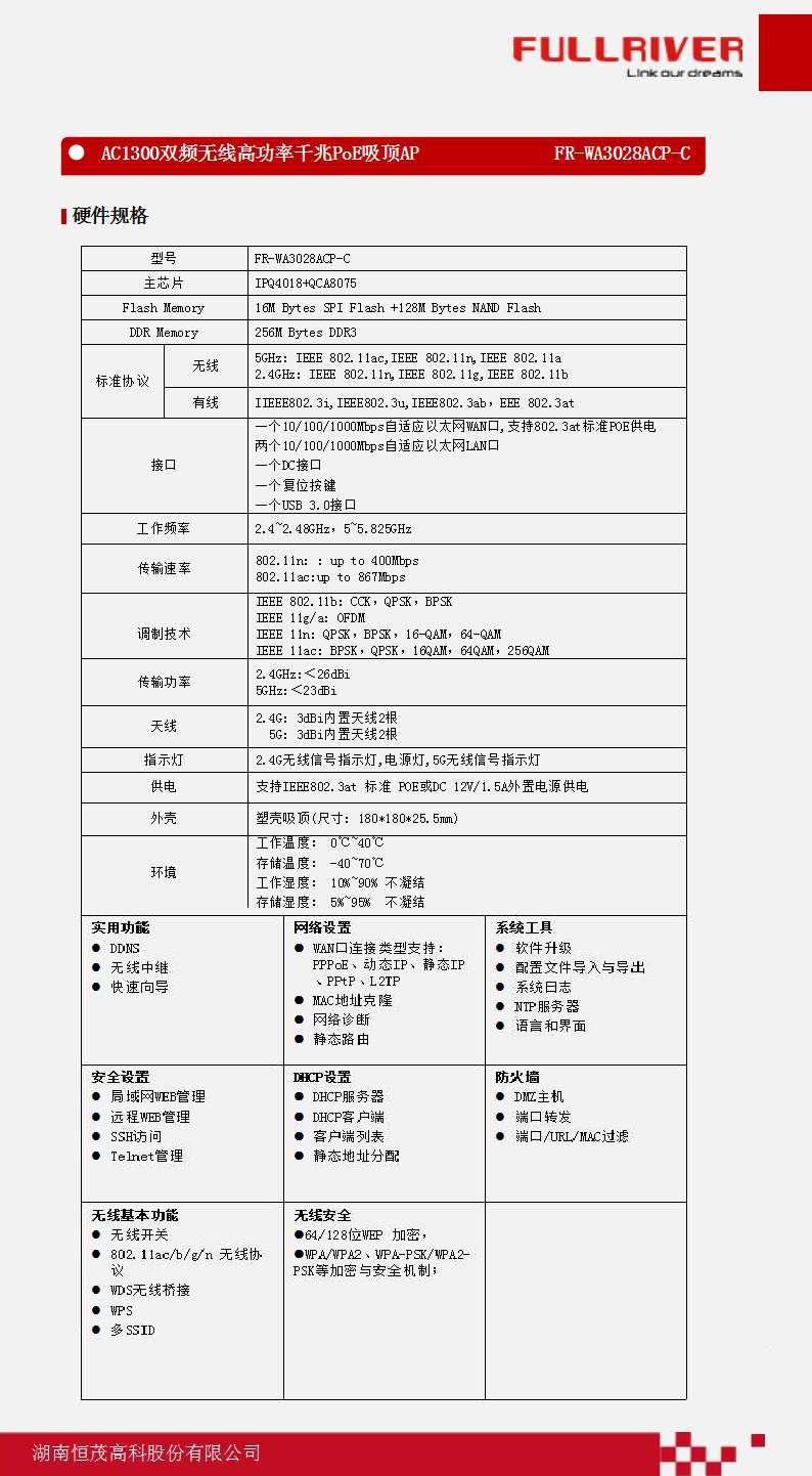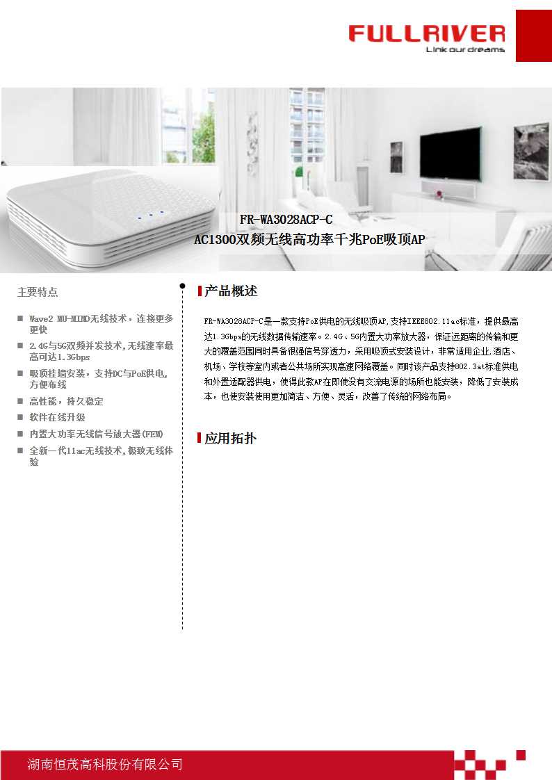 恒茂高科FULLRIVER AC1300双频无线高功率千兆PoE吸顶